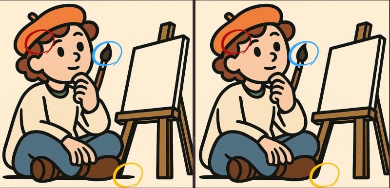 Ste pripravljeni preizkusiti svoje sposobnosti opazovanja? Oglejte si dve sliki umetnika, ki sedi pred platnom. Na prvi pogled se zdi, da sta sliki popolnoma enaki, vendar so med njima tri majhne razlike.
