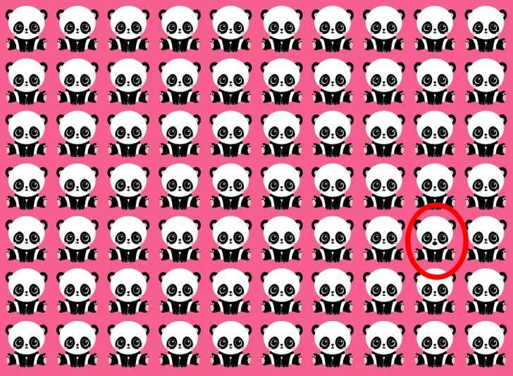 Poskusite rešiti zabavno uganko – med popolnoma enakimi pandami morate najti eno, ki se od vseh razlikuje le po eni lastnosti.