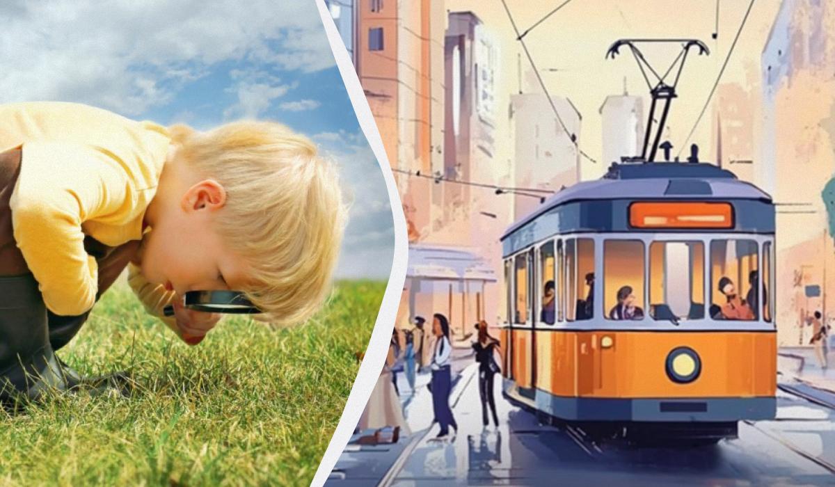 Slika prikazuje prometno ulico, po kateri hodijo ljudje in vozi navaden tramvaj. Nastaviti moraš časovnik za pet sekund in uspeti najti napako, preden se čas izteče. Ste pripravljeni?