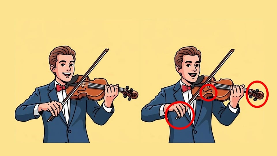 Ste pripravljeni na nov izziv? Pozorno si oglejte obe sliki z violinistom. Na prvi pogled sta videti enaki, vendar je to iluzija – med njima se skrivajo tri majhne razlike. Boste v 37 sekundah uspeli opaziti vse? Čas je, da preizkusite svojo pozornost!
