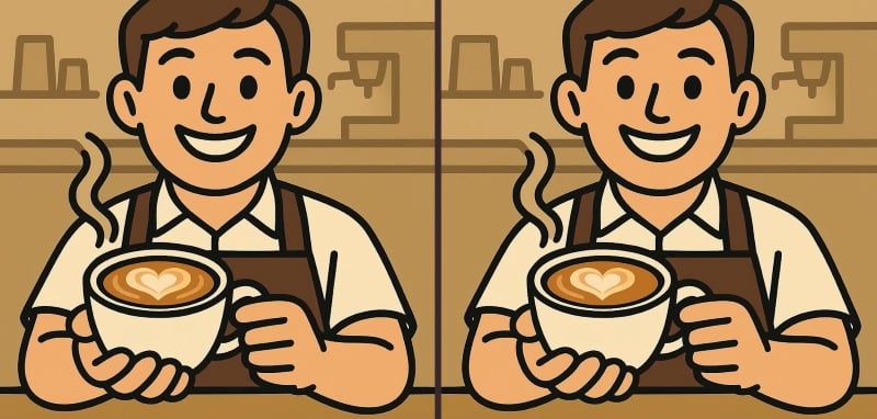 Ste pripravljeni preizkusiti svoje sposobnosti opazovanja? Oglejte si dve sliki barista. Na prvi pogled sta videti enaki, vendar so med njima tri subtilne razlike. Ali jih lahko opazite v 45 sekundah?