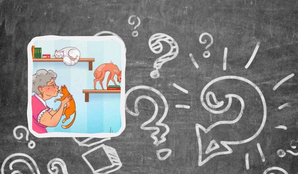 Na sliki je upokojenec, obkrožen s hišnimi ljubljenčki. V sobi se igrajo in počivajo mačke in mačkoni različnih pasem. Morda se zdi, da na sliki ni ničesar odveč, vendar ni tako – umetnik je tu skril nedoslednost.