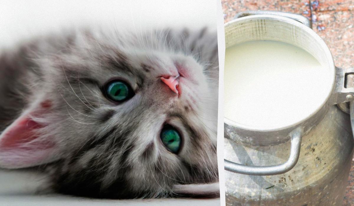 Poiščite mačko, ki lahko prva pije mleko / kolaž Moje