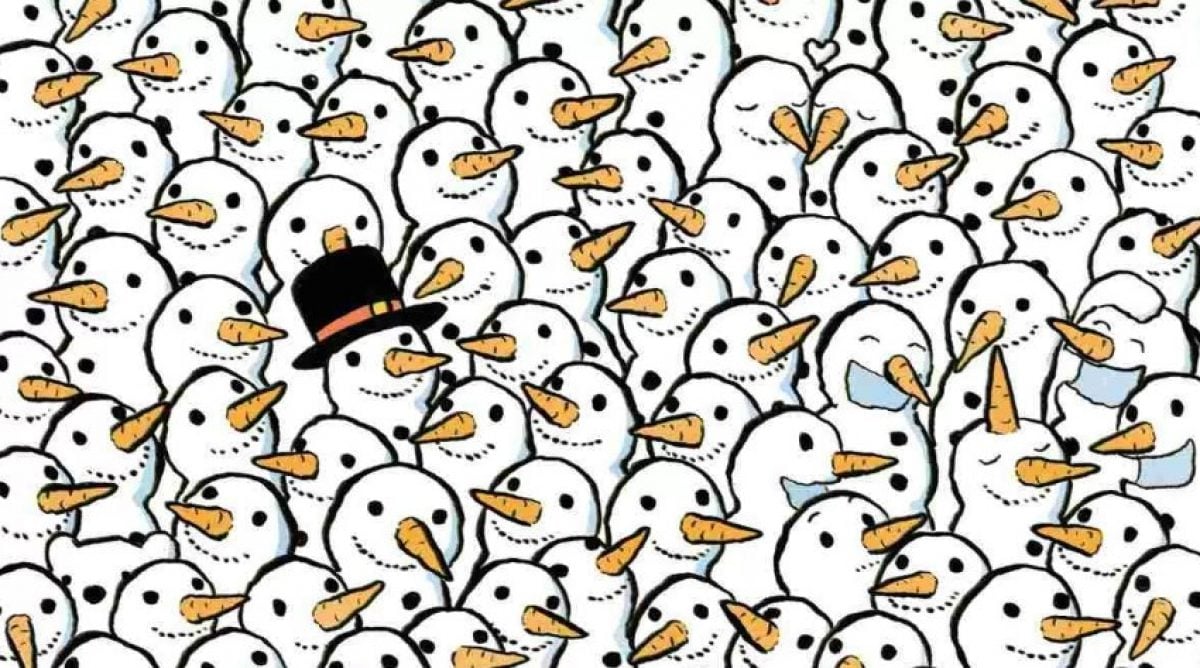 Rešite zanimivo in zanimivo optično iluzijo – na sliki je veliko snežakov, med njimi pa je skrit medved, ki ga bo težko najti.