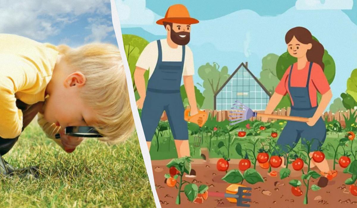 Tokrat vam predstavljamo precej preprosto uganko o hroščih. Pozorno si moraš ogledati zelenjavni vrt, na katerem delata dve osebi, in opozoriti na nenavadno podrobnost.