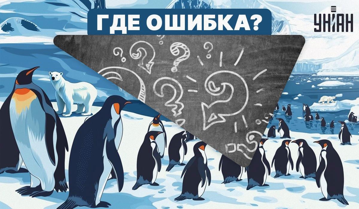 Na sliki je jata pingvinov, ki hodi po ledu. Na prvi pogled je slika videti običajna. Vendar ni. Na sliki je ena očitna napaka, a jo lahko opazite? Za to boste poleg pozornosti in logike potrebovali tudi širok pogled.