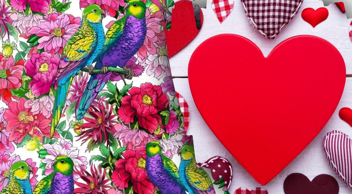 Pred vašimi očmi – svetla slika z veliko cvetlicami in papagaji. Ptice sedijo v parih med rožami. In v tem romantičnem vzdušju je nekje skrito srce. Kje točno se nahaja, ne boste mogli videti.